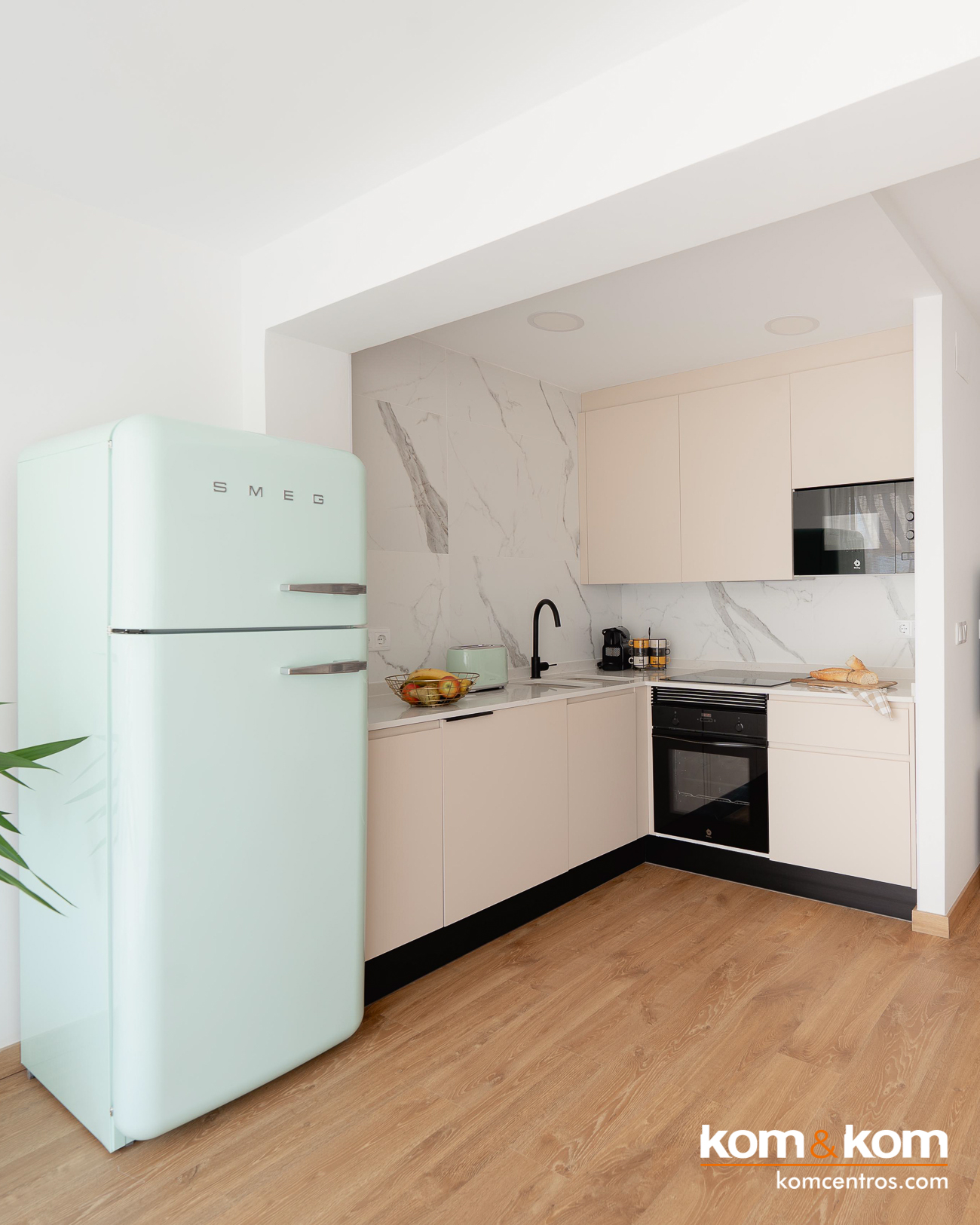 Cocina Pequeña Moderna con Encanto Vintage | Color Beige