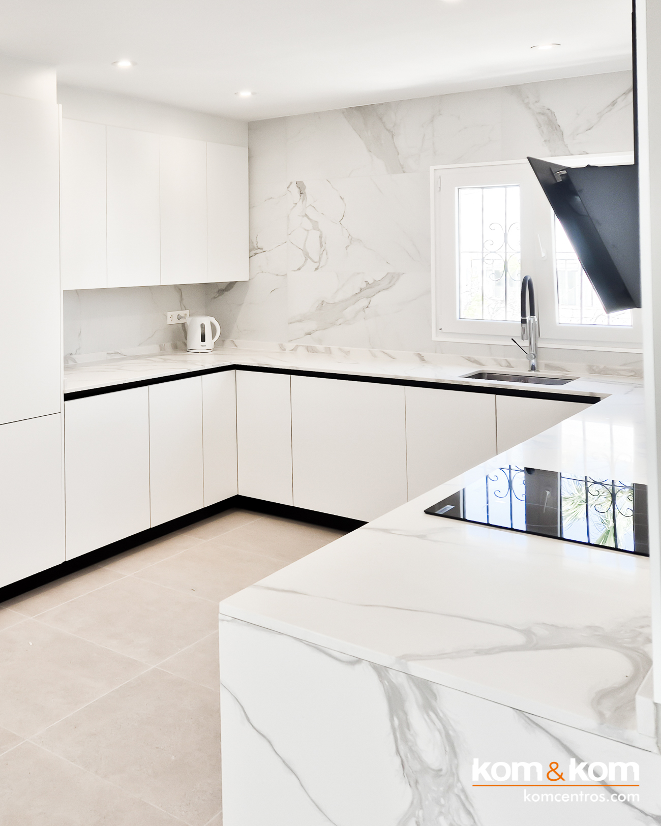 Cocina Mármol Negro | Diseño Blanco Brillo | Kom&Kom Yecla